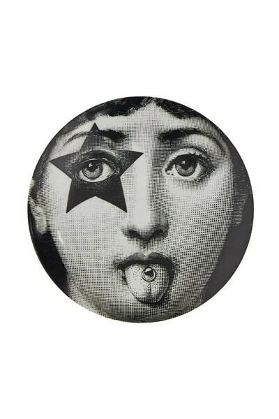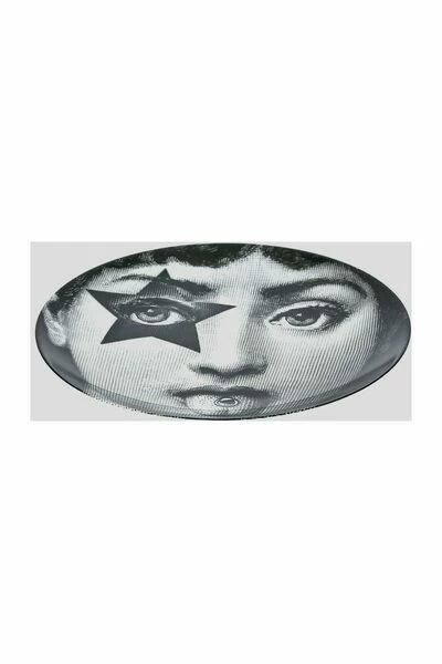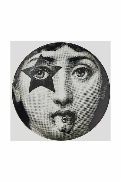 Zwart/wit keramiek bord van Fornasetti voorzien van rond gezicht, grafische print en logo print aan de achterzijde. Materiaal: Keramiek Deze beschrijving is automatisch vertaald.