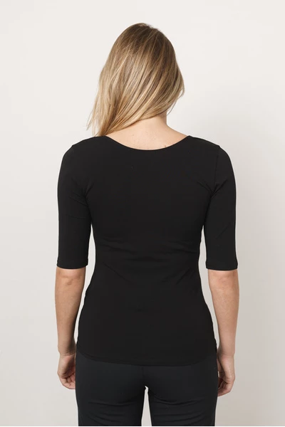 T-shirt van Filipp K. Deze onmisbare basic van Filippa K is gemaakt van biologisch stretchkatoen. De lage, ronde hals is van binnen afgezet met een delicate bies en de top heeft een slim fit en mouwen tot de elleboog. Uniek Mode maakt gebruik van Nederlandse maatvoering. De maten van Scandinavische en Duitse merken zijn gelijk aan de Nederlandse maatvoering.Maatvoering:NL XS (34), S (36), M (38), L (40), 42 (XL)Materiaal: 90% katoen, 10% elastanePasvorm: Dit item heeft een aangesloten pasvorm.